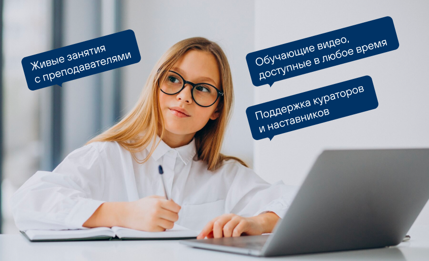 - Поддержка куратора. Персональный куратор дополнительно проконтролирует успеваемость ученика, поможет найти ответы на организационные вопросы, скорректирует график и многое другое.